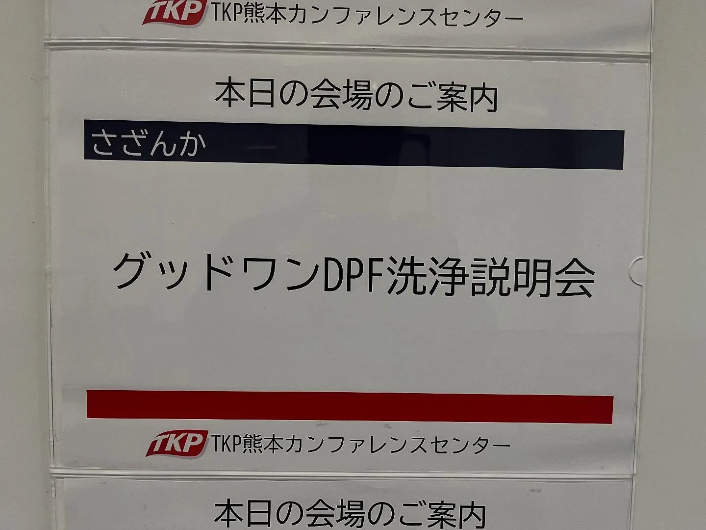 本日13時より、熊本県熊本市にてグッドワンのDPF洗浄・エンジンクリーニングの説明会が行われます。