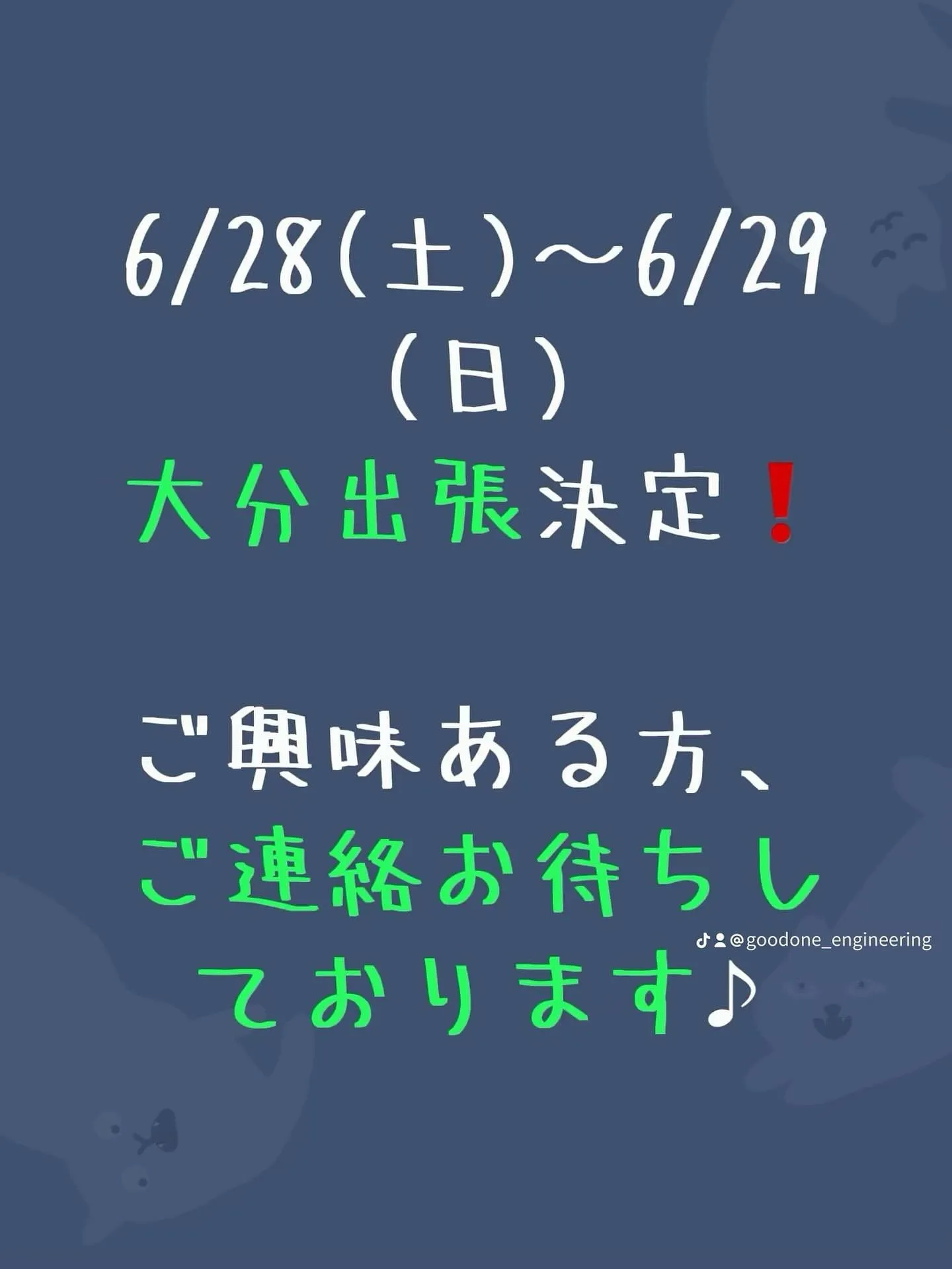 6/28(土)〜6/29(日)、大分県大分市にエンジン・DPFクリーニングの出張施工でお伺いします。